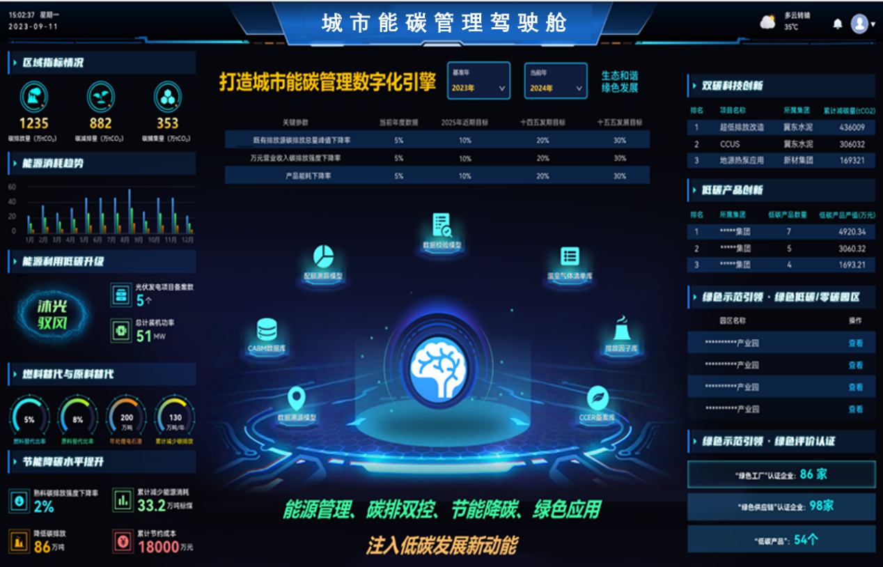 在國家雙碳戰(zhàn)略目標的整體背景下,圍繞能源革命及雙碳使命總體要求,區(qū)域能碳底數(shù)缺乏統(tǒng)一計量,雙控轉(zhuǎn)向無抓手,能源雙碳管理無連接,能碳數(shù)據(jù)應用薄弱,信息孤島現(xiàn)象嚴重,基于上述重點需求,建立“1張圖、1套艙、N應用”的城市能碳綜合管理平臺,通過鏈接能源管理,融匯雙碳管理體系,打造“能+碳”雙重管理應用體系,摸清區(qū)域能碳底數(shù),實現(xiàn)碳動態(tài)平衡,提升達峰中和管理效率,助力推動能耗雙控逐步轉(zhuǎn)向碳排放雙控,建立節(jié)能降碳有效機制,構(gòu)建綠色低碳循環(huán)經(jīng)濟體系,信息化助力城市零碳目標的實現(xiàn)。